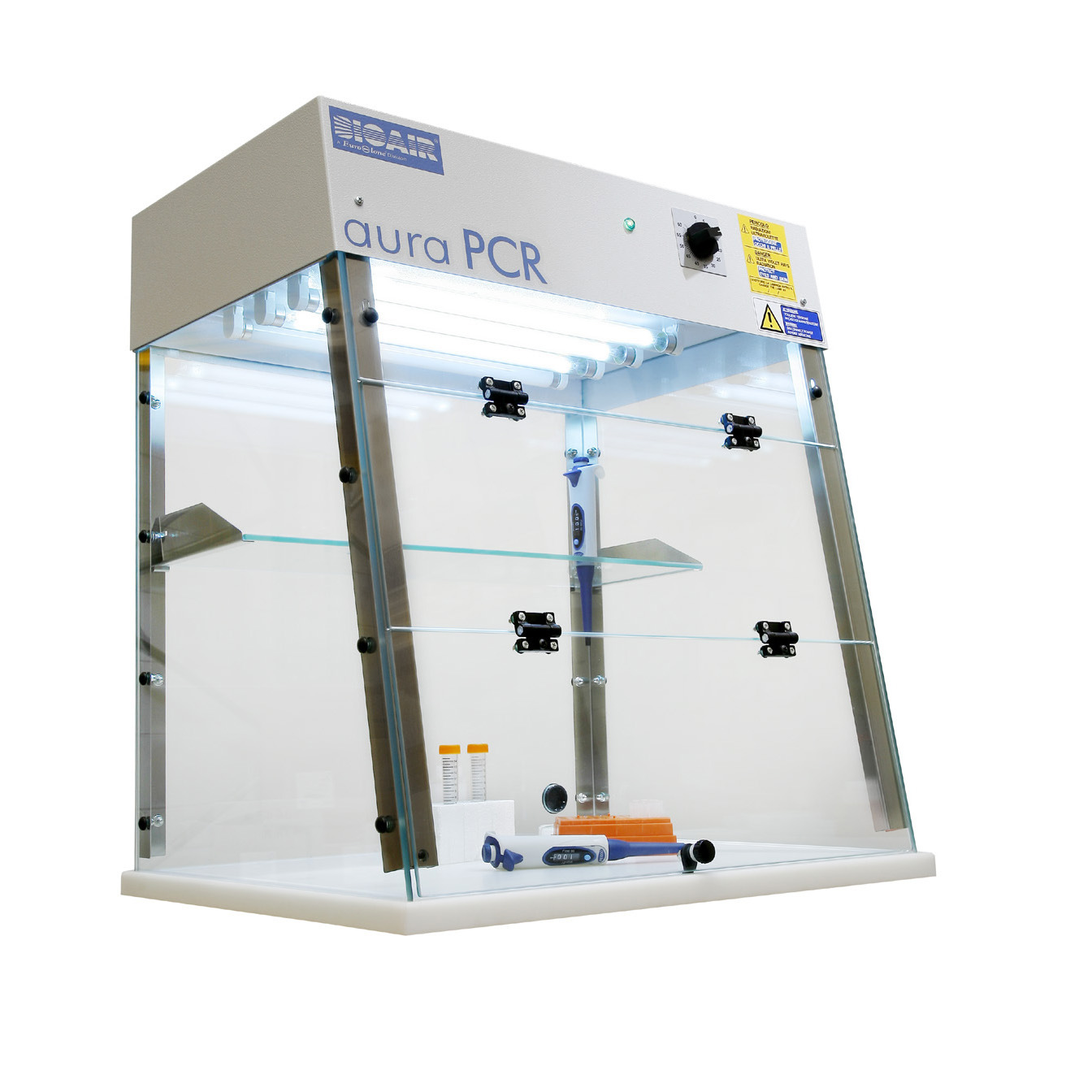 Gabinete para protocolos de PCR, con lámparas UV neutralizantes. Adecuado para el ADN neutralizante en aerosoles gracias a la oportuna UV radiación.